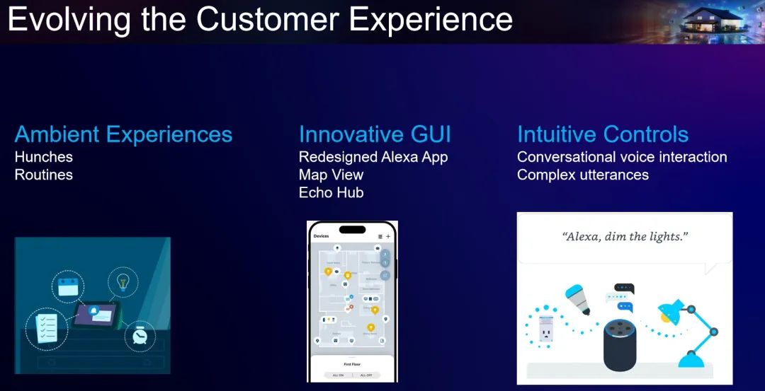 亚马逊 Alexa 首席业务拓展经理胡凯峰分享了 Amazon Alexa 智能家居 借助 AI 打造的全新功能,为客户带来的革新体验,包括沉浸式智能家居体验、创新性用户操作界面 GUI、以及为智能家居产品提供的更自然的语音控制体验等。同时他还介绍了 Alexa 丰富的 AI 能力,希望未来能与更多家居企业持续挖掘与共建。