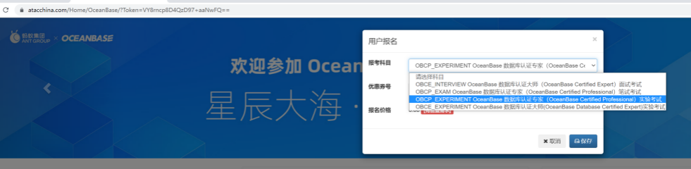 如果您是OceanBase的客户或者合作伙伴,可以联系OceanBase业务人员获取考试优惠券号,并在“优惠券号”内输入优惠券号。