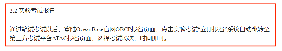 尊敬的考生,首先恭喜您通过OceanBase OBCA数据库认证专员考试。感谢您报名OceanBase数据库认证专家OBCP V3考试。请仔细阅读如下考试须知,如您对以下内容有疑问,可以联系我们。
