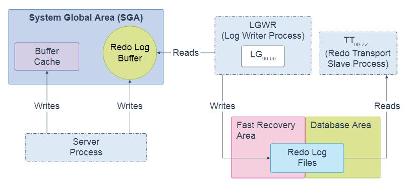 重做传输从属进程(TT00-zz)将重做从当前的联机和备用重做日志发送到为异步(ASYNC)重做传输配置的远程备用目标。