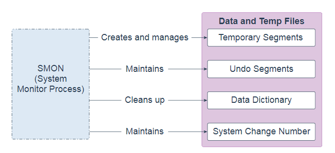 系统监视器进程(SMON)是执行许多数据库维护任务的后台进程,包括以下内容: