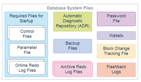 以下数据库系统文件在Oracle数据库操作期间使用,驻留在数据库服务器上。请注意,数据文件是属于数据库容器的物理文件,此处不再赘述。