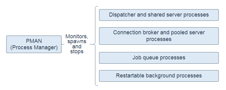 进程管理器进程(PMAN)是一个后台进程,可根据需要监视,生成和停止以下操作:
