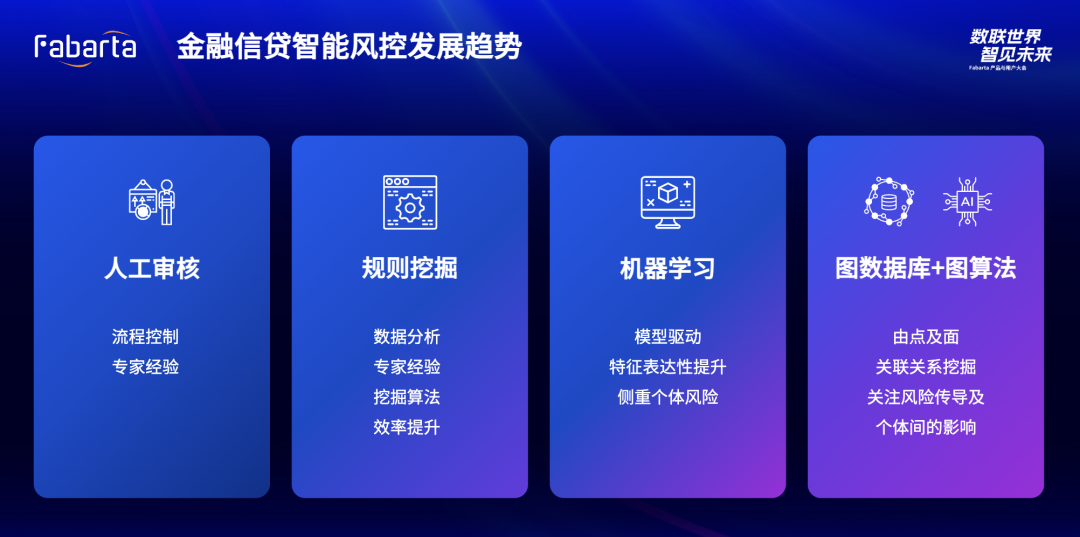 本文根据大树科技风控&大数据负责人申宇峰在 Fabarta 产品和用户大会 2023 上的演讲实录整理。作为 Fabarta 早期的合作伙伴之一,大树科技的案例分享主要集中在金融风控领域,智能风控体系也是大树科技的核心竞争力之一。申宇峰分享了在金融信贷场景下智能风控是如何逐步发展的,深度剖析了其演进过程以及这些演进推动了大树科技的哪些业务需求。