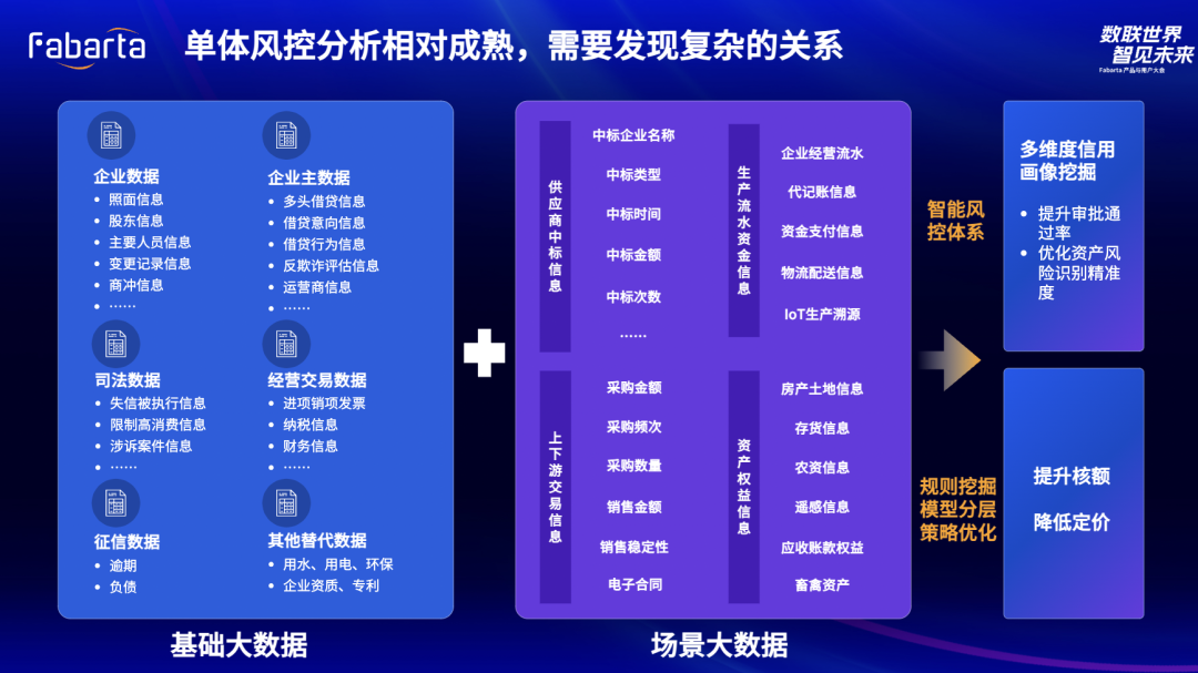 - 为智能风控提供新视角:基于图的挖掘和算法为我们的智能风控提供了新的视角。相较于过去仅仅关注个体风险,我们现在能够同时观察到群体风险,这为我们对企业所处环境的真实认知和深入洞察提供了更多的可能性。与此同时,基于图的挖掘方法本身具备可解释性,这对于我们的业务非常重要。在识别风险客户和发现风险特征时,我们需要能够给出业务上的可解释性,而图天然具备这样的属性。
