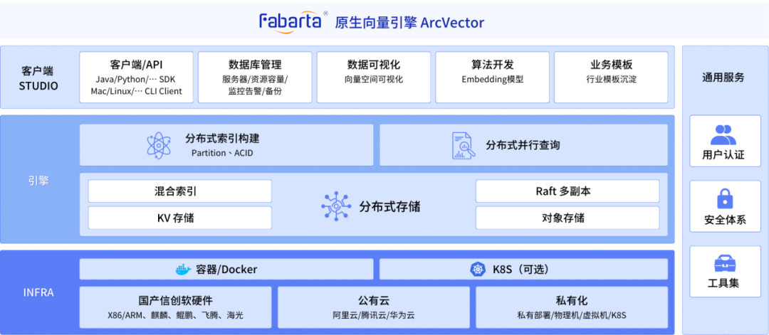 ArcVector 是 Fabarta 公司推出的一款创新型的分布式向量数据库,它是多模态智能引擎 ArcNeural 的组成部分。该数据库不仅能够无缝融入 ArcNeural,作为向量属性,还可作为独立的专业向量数据库进行部署。