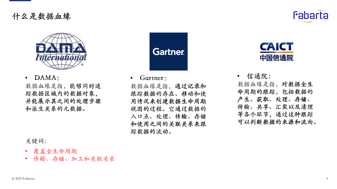 信通院:数据血缘是指对数据全生命周期的跟踪,包括数据的产生、获取、处理、存储、传输、共享、汇聚以及清理等各个环节,通过这种跟踪可以判断数据的来源和流向。