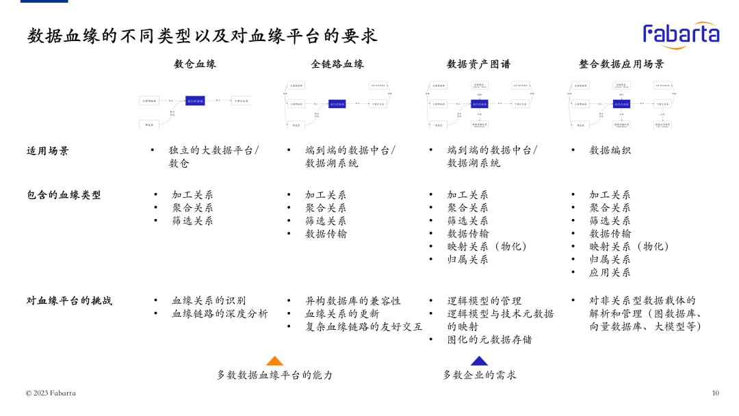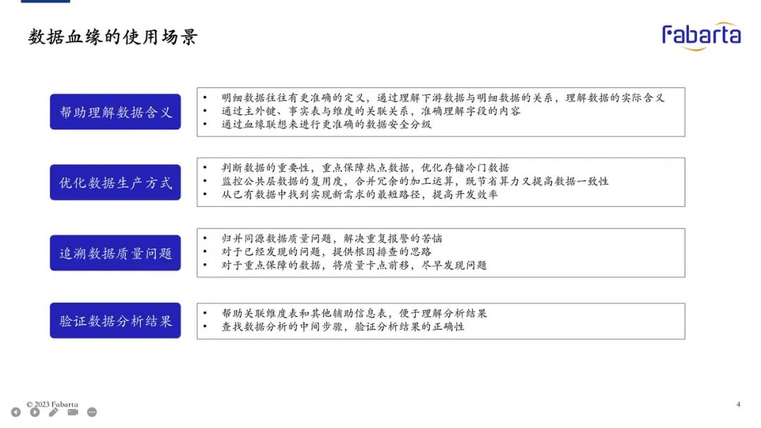 导读 本文根据 Fabarta 产品总监陈振在金科创新社公开课整理而来。文章依据 Fabarta 利用自主可控的图引擎和先进的 AI 解析能力构建智能数据血缘治理解决方案的实践经验,分享了数据血缘的定义、演进过程、数据血缘平台的核心能力,以及在应用领域的多样性等内容,全文分为三个主要部分:- 探讨了数据血缘的本质和意义,及其在数据治理和业务开展中的重要价值。