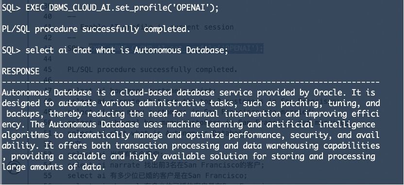使用SELECT AI与LLM进行交互生成SQL或者结果。