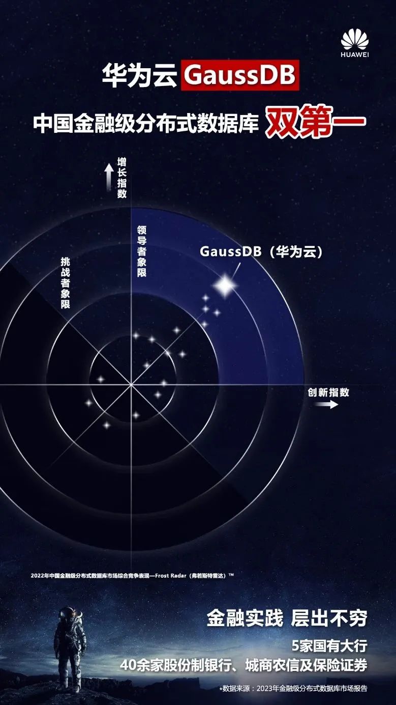 在金融领域,GaussDB助力邮储银行数字化升级。新一代个人业务分布式核心系统为6.5亿个人客户、4万+网点提供日均20亿笔、峰值6.7万笔/秒的交易处理能力。自2023年6月华为云正式发布GaussDB以来,已有50多家金融机构选择了GaussDB。