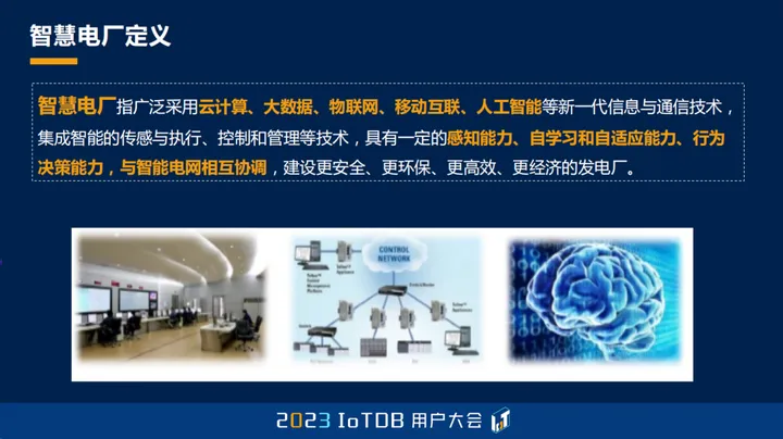 今天到这里来,主要是给大家汇报几方面:第一就是我们大唐先一本身的智慧电厂的业务情况,以及我们现在基于 IoTDB 构建的物联网平台的架构。然后因为 IoTDB 在大唐应用场景很多,我就选择了一个比较典型的场景给大家分享一下。最后的话就是对 IoTDB 以及先一的物联网平台的未来展望,我其实上午听了一下王(建民)院长,还有乔(嘉林)博士的一些发言,所以也得到了一些答复。