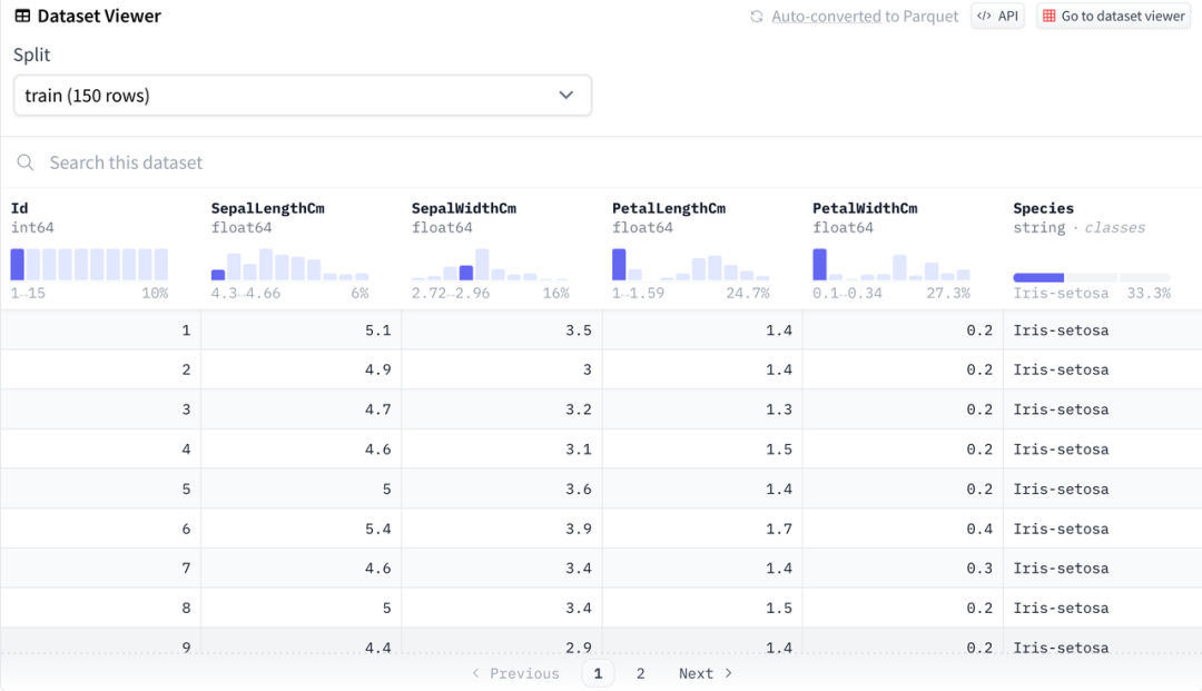 HuggingFace 提供公开可访问的 REST API ,并且支持在上传时将数据集文件自动转化为 Parquet ,使其能够与数据库和数据分析工具轻松集成。