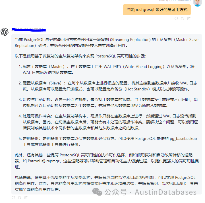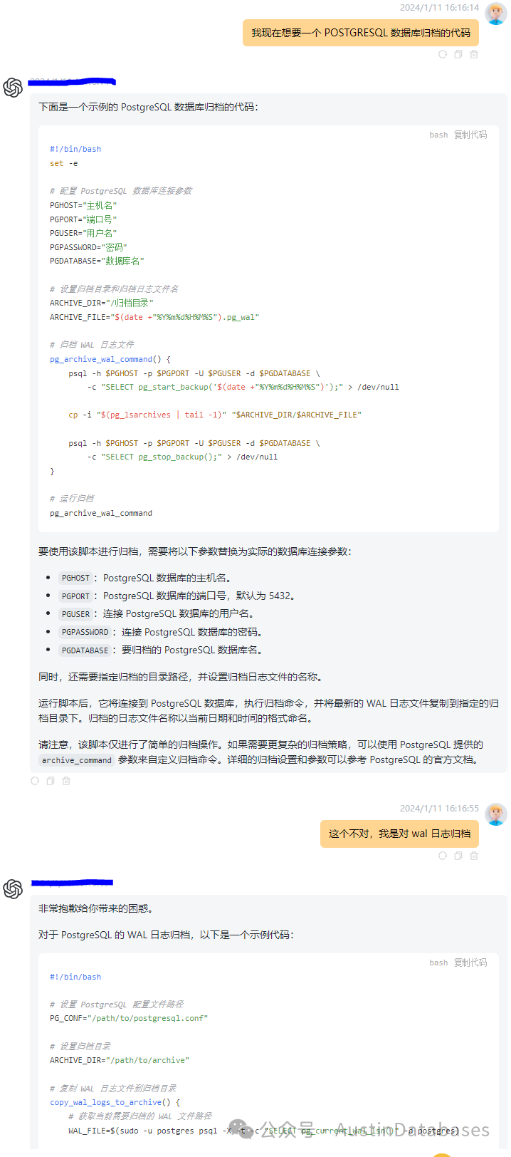 我们举例你现在要进行POSTGRESQL 的数据归档的工作,但你不知道怎么做,但你知道你需要对WAL文件进行归档,那么你只需要告诉他你要做什么,并将你评判答案的对错告诉他,然后他就会大概率朝着你要的方向去做,你获得知识举例真相的可能性越来越高,你可以快速的拥有你不曾懂得的知识,并快速的进行利用和使用。