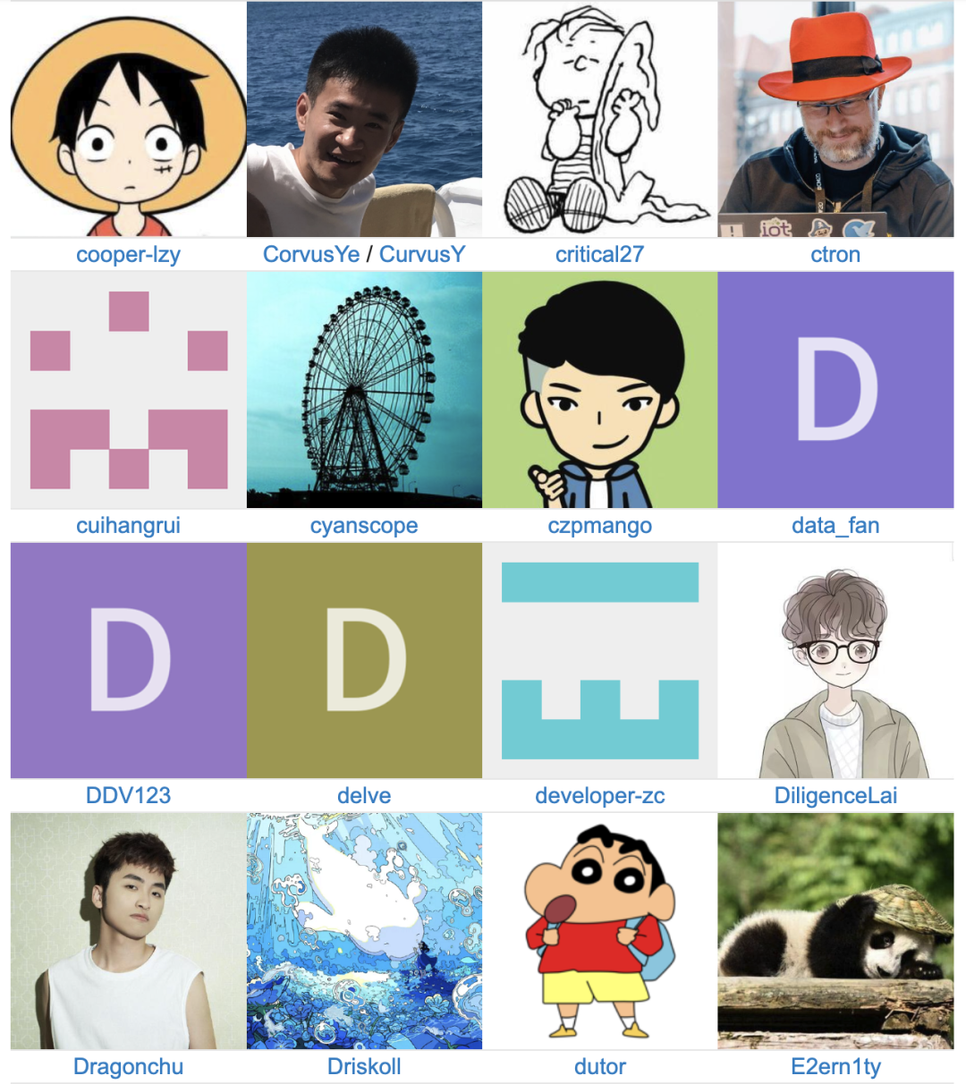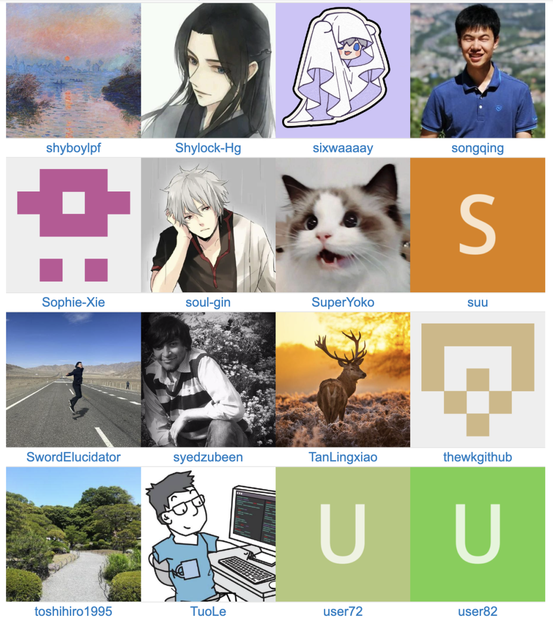 在时间轴部分,我们记录了每位用户的首次贡献,它可能是一个 issue 提交,也可能是一篇文章的撰写。
