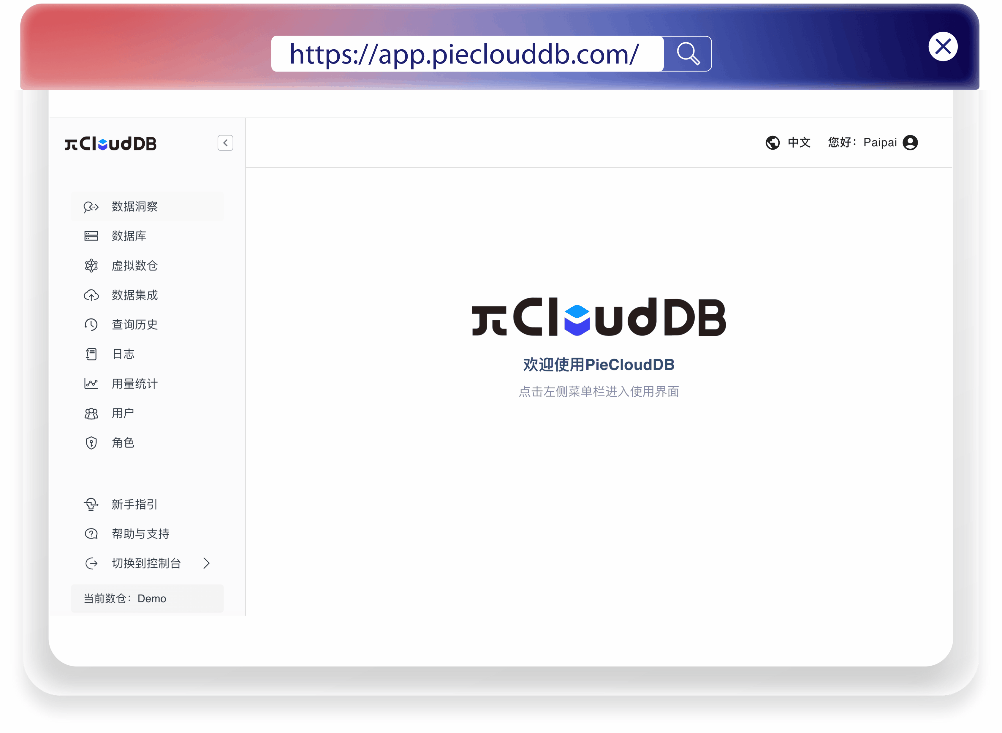PieCloudDB 云上云版控制台登录逻辑进行了优化。如今,组织欠费或试用到期后关闭数仓仍可登录控制台。