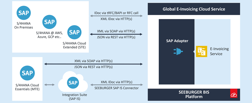SAP公有云中的SAP S/4HANA需要使用SAP集成套件(以前称为SAP CPI)转发电子发票再集成到SEEBURGER BIS
