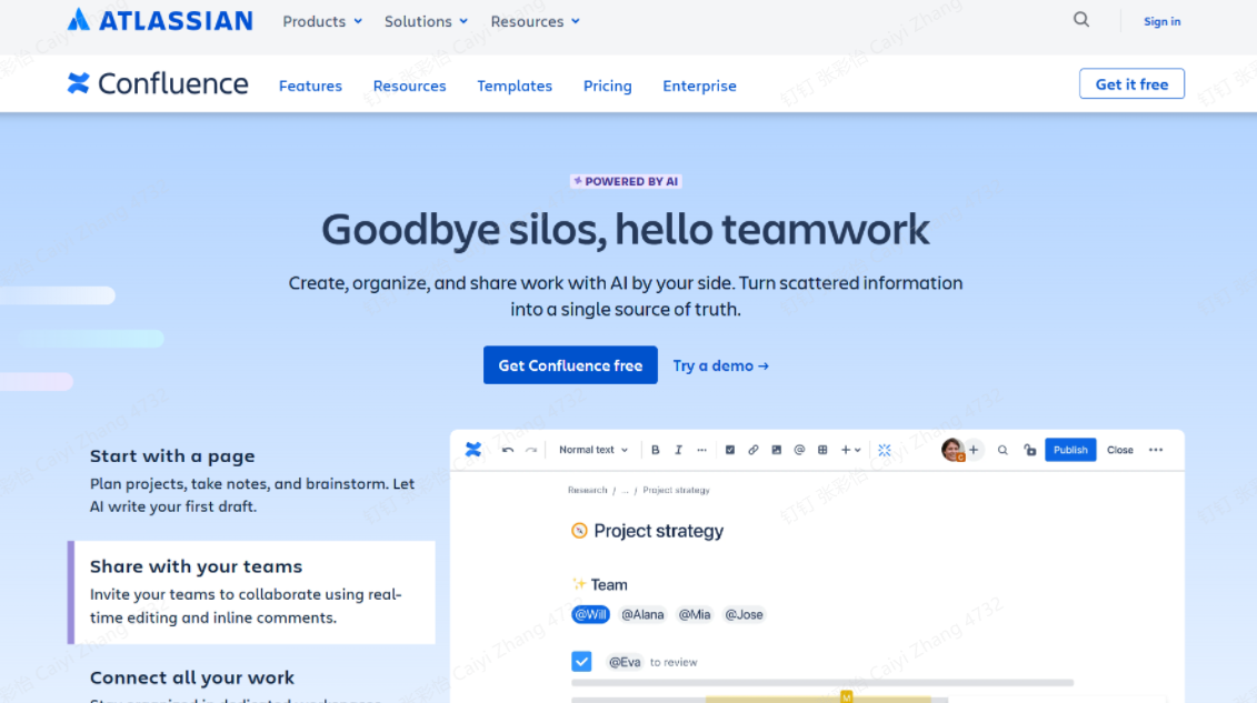 优势:支持实时讨论和协作、可自定义工作区和权限设置