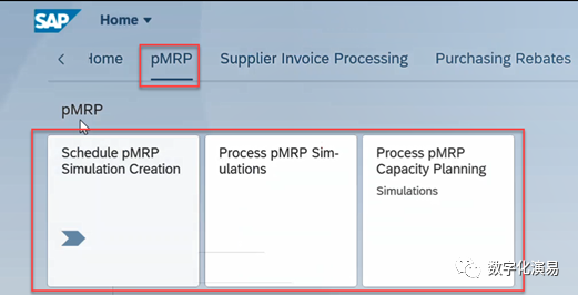pMRP中的p,也就是所谓的Predictive,并不是指类似于大数据或机器学习中的自动预测能力,此处可理解为提前性计划或中期运作计划,而这和S/4HANA中的LTP(Long-TermPlanning,长期计划)有类似之处。不错,pMRP和LTP都可以做中期生产计划,且都是模拟性计划;只不过,与LTP所不同的是,pMRP针对的是某个(些)选定物料或工作中心来做,且pMRP主要以Fiori Apps的方式来使用,用户界面更友好,操作更简单,也有人认为它是LTP的演进版。pMRP中的MRP,与常规的MRP相比,虽然其缩写都是“MRP”,但此“R”非彼“R”。pMRP中的“R”指的是Resource(资源),常规MRP中的“R”指的是Requirements(需求)。简要来说,常规的MRP是无限制(或能力约束)的物料需求计划,pMRP则是把物料需求与能力需求综合起来看,目的就是检查物料需求是否有足够的资源或能力来满足,如果不能满足,则需要做相应的调整。从这个角度来看,pMRP与S/4HANA中的内置式PP/DS似乎又有类似之处。不错,从逻辑和效果等方面看,pMRP与PP/DS(生产计划与详细排程)有类似之处,两者大体上都是将物料需求与能力需求进行综合运算,以确保产品需求或生产计划的可行性。只不过,pMRP所应用到的算法比较简单,运算结果也没PP/DS那么精细;大体上,我们可以把pMRP视为简易版、mini版或lite版的PP/DS。好了,通过上述比较,我们基本了解了pMRP的功能特点(中期计划、模拟计划、有限需求与能力计划),下面就来看看pMRP具体是如何使用的。图1:pMRP的典型运行步骤