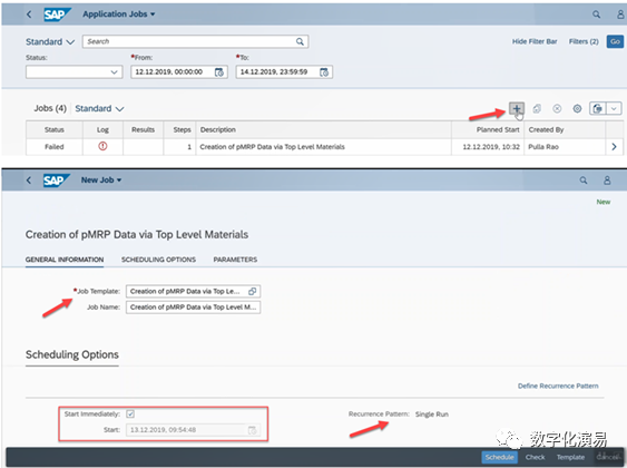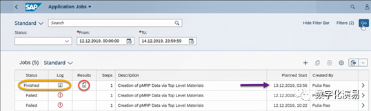 如图1所示,pMRP在实际使用时通常包含这么几个步骤:1)明确pMRP运行的背景和目的,2)准备pMRP运行所需的数据,3)创建pMRP模拟任务,4)查看pMRP运行结果并做必要处理,5)发布并使用调整后的运算数据。其中,第1步是纯线下的、意图性准备工作,下面我们就从第2步开始,结合S/4HANA操作界面的拷屏图片来了解pMRP的运行特点。顺便提一下,pMRP的运行并没有,也不需做相应的系统配置,可以说它就是一个开箱即用的计划工具。pMRP运行所需的数据包括静态的生产主数据和动态的交易数据。静态的生产主数据包括相关的物料主数据、BOM、工作中心、工艺路线、生产版本,等等。在一个正常的S/4HANA生产环境中,上述制造类主数据应该都是具备和完整的,其具体维护就不在此赘述,pMRP运行时将根据模拟任务的相关参数来选择相应的生产主数据作为其参考数据。pMRP运行所需的交易数据,也就是计划对象或产成品的未来生产需求,是以计划独立需求(Planned Independent Requirements,PIRs)的形式来体现,所以,我们需要在系统中先创建或维护相应物料的计划独立需求,其系统操作与常规的PIRs创建类似,具体可参见下图2:如图2所示,我们在系统中创建了产成品物料HSC05DD自2020年2月3日至2020年2月28日,以周为时间块(W6~W9)的计划独立需求,而接下来就是要通过pMRP的运行,来看看上述物料需求的生产是否可行,下阶零部件和资源上是否能够满足。在S/4HANA中,pMRP的运行和使用主要是以Fiori App的形式来完成(在SAP GUI中,可以通过运行PMRP_CREATE_ENVIRONMENT_MAT等ABAP报告的形式来使用),而相关的App主要有下图3所示的几种。具体来说,创建模拟任务要用到App:Schedule pMRP Simulation Creation,而查看、处理、调整和发布模拟结果则需要用到App:Process pMRP Simulations。为了创建一个新的pMRP模拟任务,我们首先点击App:Schedule pMRP Simulation Creation,在图4所示的模拟任务列表界面再点击添加新任务按钮:“+”,就可以录入与任务所需的相关数据。创建pMRP模拟任务所需的相关数据录入界面主要由三个Tab页构成:GENERAL INFORMATION(通用信息)、SCHEDULING OPTION(计划选项)和PARAMATER(参数)。在“通用信息”Tab页,用户需要选择所需的任务模板,要么是Creation of pMRP Datavia Top-Level Materials(通过顶层物料来录入pMRP数据,也就是从常规运营环境中提取制造主数据作为pMRP模拟运行的参考数据),要么是Creation of pMRP Data via Work Center(通过工作中心来录入pMRP数据);前者是从顶层物料的视角来看能力需求和生产计划的可行性,后者是从某个工作中心的视角来看其负荷进而来评估相应生产计划的可行性。在图4中,选择的是通过顶层物料来录入pMRP数据,后续其他数据的录入可参见图5:如图5所示,录入模拟任务的ID、开始和截止日期、时间块的类别(日、周或月)、顶层物料所在的工厂、顶层物料的物料编码等数据后,点击屏幕右下方的“Schedule”按钮,提交数据至后台运行。再返回到任务列表界面,就可以看到刚才所提交并创建好的pMRP任务,详情如下图6所示。点击“Log”列下面的信息提示按钮,可以查看任务数据在后台的执行情况;点击“Results”列下方的文件按钮,可以查看pMRP模拟任务的运行结果。通过Fiori App:Process pMRP Simulations,我们可以查看、分析、处理和调整pMRP模拟运行的结果。如图7所示,点击App:Process pMRP Simulations后,我们将进入到pMRP模拟运行结果的列表页。在这里,可以看到刚才提交并运行的pMRP模拟运行任务状态为“Created(已创建)”。点击屏幕列表最左边模拟任务ID和描述下面的蓝色字体:“Simulation Summary(模拟详情)”,可以查看本次pMRP模拟运行的详细信息,具体可见下图8:点击图8所示屏幕顶部最左方的返回按钮“<”,返回到下图9所示的列表页(与图7内容相同),我们会发现该模拟运行产生了5个与能力有关Issue(图中红色框框处),接下来我们就对这5个Issue进行处理。选择图9所示任务列表中刚才所创建的pMRP任务行,点击该任务行最右端的箭头“>”,进入到需求计划模拟的详情页,可以查看到底是需求计划的哪个时间块或哪些数据存在能力Issue,详情可参见图10:如图10所示,在文中“数据准备”阶段所维护的物料HSC05DD的计划独立需求中,第六周(W6)的计划存在与之相关的3个能力方面的Issue。换句话说,在该时间段,存在能力超负荷的情况。为了解决这几个能力方面的Issue,我们可以采取以下几种措施:(1)调整物料的计划独立需求。实际就是减少该时间段的生产需求,从而减少与之相关的能力需求,以消除因能力超负荷所导致的Issues。(2)提前生产(Preproduce)。把存在能力瓶颈的需求提前到之前生产,如果之前的时间段能力有空余的话。(3)更改供应来源(Chang Source of Supply)。如果一个物料有两个或以上的生产版本,也就是存在两个或以上的设备或生产的线(供应来源)的话,就可以把需求切换到有能力空余的其他生产版本去生产。(4)改变可用能力,也就是提高能力使用率。通常情况下,我们会把设备的使用率或负荷安排在80%左右。在可用能力不能满足生产需求时,我们可以把设备的使用率调整到100%以上,甚至130%以上,以提供更大的能力,实际上就是通过加班的方式来解决。(5)直接无视某些能力Issue的存在,这是“佛系”的做法。一般来说,我们不会减少计划独立需求,而是尽可能通过内部调整来满足需求。下面,我们分别举例来演示“更改供应来源”、“提前生产”、“改变可用能力”等做法