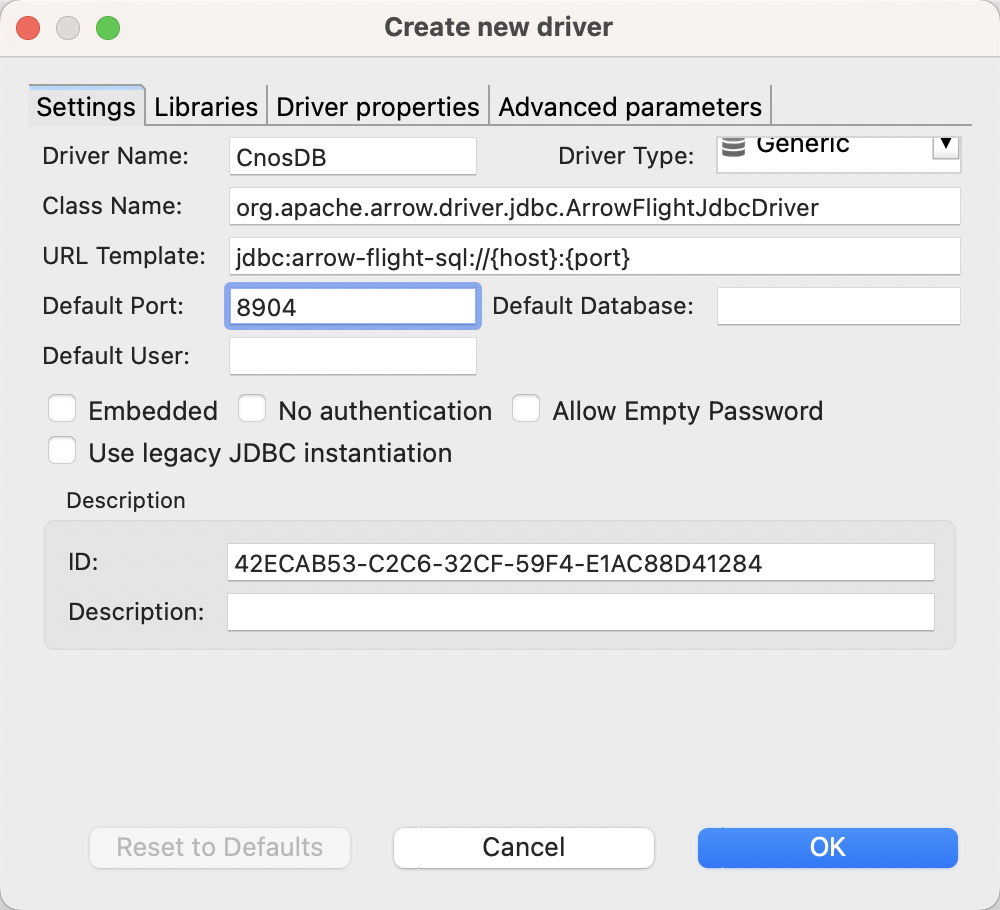 a. Driver 填个响亮的名字,比如 CnosDB。