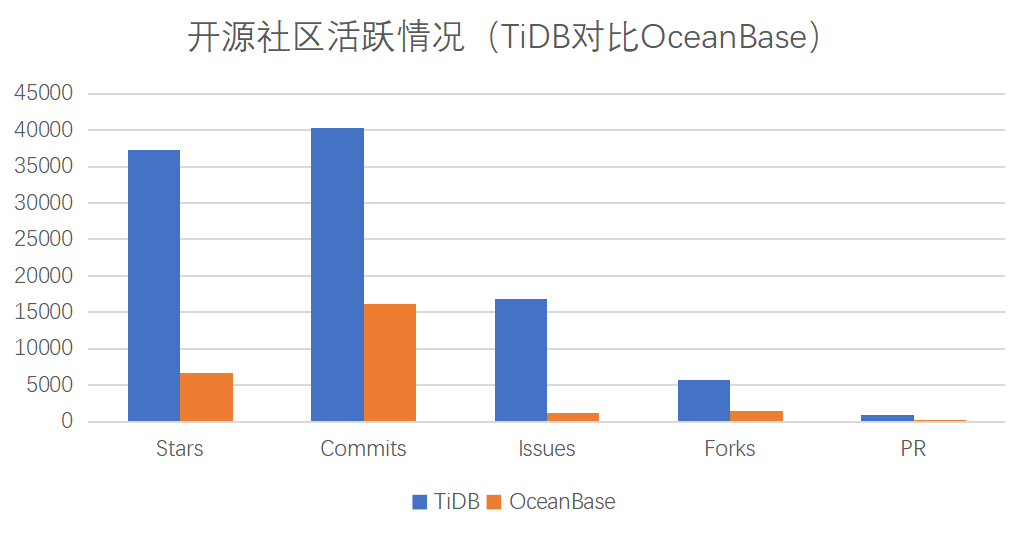 全球最著名的开源单机关系型数据库非 MySQL 和 PostgreSQL 莫属,他们代表了单机关系库的两大阵营,大多数的国产数据库也是基于他们开发和迭代。而如果问你国内数据库里面哪个开源产品做的最好,我相信大多数人会说是 TiDB 。从 PingCAP 公司 2015 年创立 TiDB 开始,它的定位就是走开源路线。事实也证明了 TiDB 的这个路线是完全正确的,随着产品不断成熟,早期开发者不断贡献, TiDB 也产生了更多用户。数量众多的用户,也吸引了新的贡献者加入。以下是 2023 年 TiDB 社区总结的部分数据:○ 2023 年 TiDB 中文社区注册人数达 33,926○ 代码贡献者 2,154 人,覆盖国家 / 地区 45 个, Star 37,000+ 再来看一下最新 https://ossinsight.io/ ( https://ossinsight.io/ ) 数据,对比目前国内主流的另外一款开源数据库 OceanBase ,TiDB 无论在用户数、提交数等方便均比 OceanBase 高出好几倍。TiDB 是一个典型的存算分离架构,计算层由多个无状态的 TiDB Server 构成,存储层由多个 TiKV 节点以及可能包含的 TiFlash 组成。存算分离架构相比于存算一体的架构,其最大的优势在于计算资源和存储资源是可以独立进行扩缩容的。假设你有一个 TiDB 集群在使用,一段时间后发现计算资源不够用了,那么你只需要扩容 TiDB Server 即可;如果是存储空间不够用了,只需要扩容相应的 TiKV 或 TiFlash 即可。但存算一体架构下是无法实现这一点的,如 CockroachDB 、 OceanBase 包括 Greenplum 等分析型数据库,它们的扩容只能是一体化的扩容,这必然带来计算或存储一方资源的浪费。