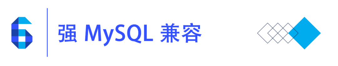 记得有一次,业务部门的人直接丢给我一堆 MySQL 5.7 的建表语句和复杂 SQL 语句,想让我看看 TiDB 的兼容程度。说实话,一开始我认为是不太乐观的,简单扫了几眼 SQL 语句,里面涉及到一些比较特殊的 json 函数、窗口函数相关的用法。后来拿着 SQL 文本放在 TiDB 里面执行了一把,居然全部执行成功没有任何的报错。这让我眼前一亮,原来 TiDB 对 MySQL 的兼容程度已经做到如此炉火纯青的地步,这也让业务部门的人对 TiDB 产生了浓厚的兴趣。TiDB 已有的 SQL 语法基本都能够兼容 MySQL ,但是还没有做到 100% ,针对这一点, TiDB 在官方文档中也明确列出来,参考与 MySQL 兼容性对比 | PingCAP 文档中心 。与很多数据库号称自己能够 99% 以上兼容 MySQL ,我更喜欢 TiDB 的实事求是,把不兼容的功能直接写明,这样用户使用起来也会更加清晰明了。