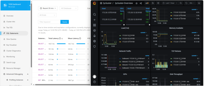 初次接触 TiDB 的时候,觉得它还是比较复杂,主要体现在安装的组件比较多,除了基本的 PD 、 TiDB Server 、 TiKV/TiFlash 之外,默认还会安装 altermanager 、 grafana 、 prometheus 和 dashboard 。然而在后期使用过程中才发现, TiDB 的这些组件对线上运维分析起着至关重要的作用。线上运维使用最多的应该是 grafana , granafa 里面涵盖了每个组件的不同面板,可以帮助用户在定位具体问题尤其是性能问题提供有力的帮助。使用 Dashboard 可以查看集群信息、慢 SQL 执行、资源管理,并且可以一键生成集群的诊断报告,用于详细分析集群潜在问题。补充说明一点, TiDB 现在有一个商业版本的 TEM 工具可以实现界面化的安装部署运维,替代命令行集群管理组件 tiup 。