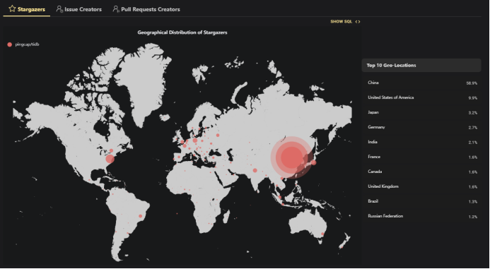 大家可能听到过很多国产数据库都声称对 Oracle 兼容多少多少,可以一键平滑去 O 之类的。对于国产数据库是否要兼容 Oracle 这件事,网上有两种不同的说法,一种是像飞总聊 IT 文章 神经病!!国产数据库为什么要兼容 Oracle ??(qq.com) 里面说的 Oracle 兼容并不容易且国产数据也没有必要去兼容它,另一种是像白鳝老师文章 兼容 Oracle 错误代码这件事,我站 OB 这一边 (qq.com) 中的观点认为兼容 Oracle 是必要的。从一个旁观者的角度,我只能说现在的国产数据库确实是太卷了,而 Oracle 又早已在很多的国内企业中尤其是金融客户中根深蒂固。国产数据库厂商为了能尽可能的通过多做一些 Oracle 兼容性的能力来减少客户迁移的成本,以此换取可能的一些商机,也属于情理之中。然而 TiDB 的思路是只想做最好的自己!谁都知道做 Oracle 兼容性能获得更多的商业机会和利润,然而 TiDB 自始至终却从未提到要去兼容 Oracle 。我个人虽然不理解这种做法的原因,但我明白一个道理就是,在研发人员规模不算大的前提下,做更多的 Oracle 兼容性意味着一定要在其他产品功能及稳定性上做出取舍。我赞同 TiDB 的做法,毕竟 Oracle 这种做了几十年的国外数据库在国家大力倡导信创的背景下也不会走太远了 ~放眼墨天轮国产数据库列表里面 300 家左右的数据库,如果让你选择出全球市场做的最好的一个,那一定非 TiDB 莫属。得益于开源, TiDB 的开源社区贡献者已经遍布了全球很多国家,中国以外的贡献者超过 40% ,主要有美国、日本、德国、印度等。另一方面,据我了解, TiDB 目前在国外也有很多的商业案例,比如 databricks 、 Airbnb 等。数据库技术起步国外领先我们几十年,能够征服国外用户并且能够很好的被商用,已经充分证明了 TiDB 的产品影响力。