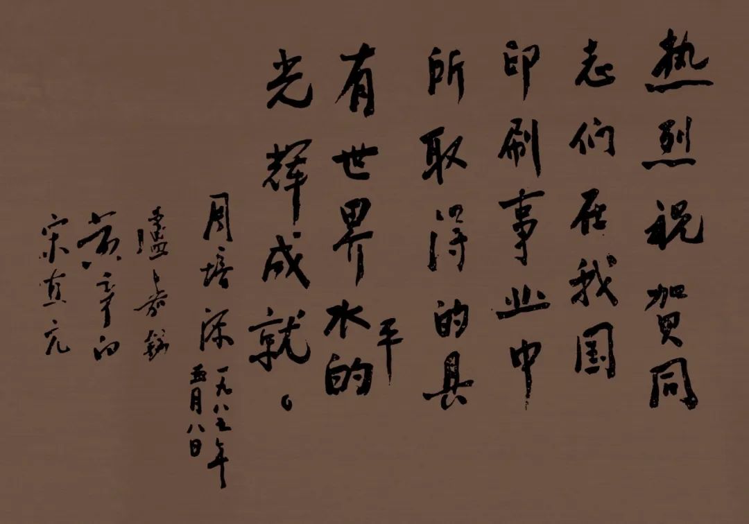 1985年5月8日,周培源等领导挥笔写下题词,赞扬王选和同事们取得的光辉成就