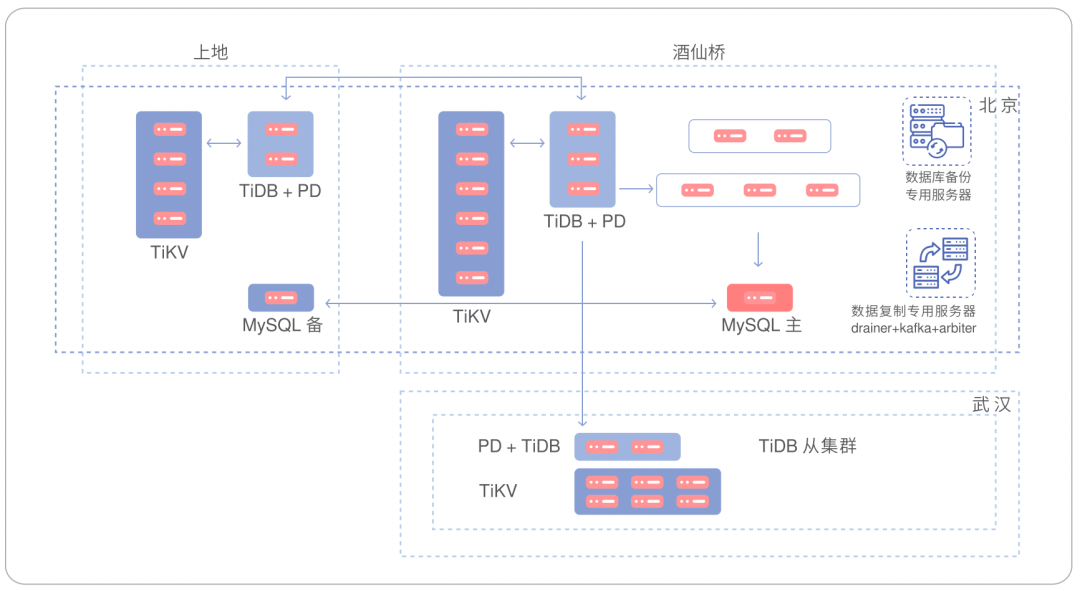 光大银行在同城两数据中心构建 TiDB 双活集群,采用 5 副本 TiKV,设计 40TB 逻辑容量,同时将 TiDB 的数据实时复制到 MySQL,提升业务容灾能力。