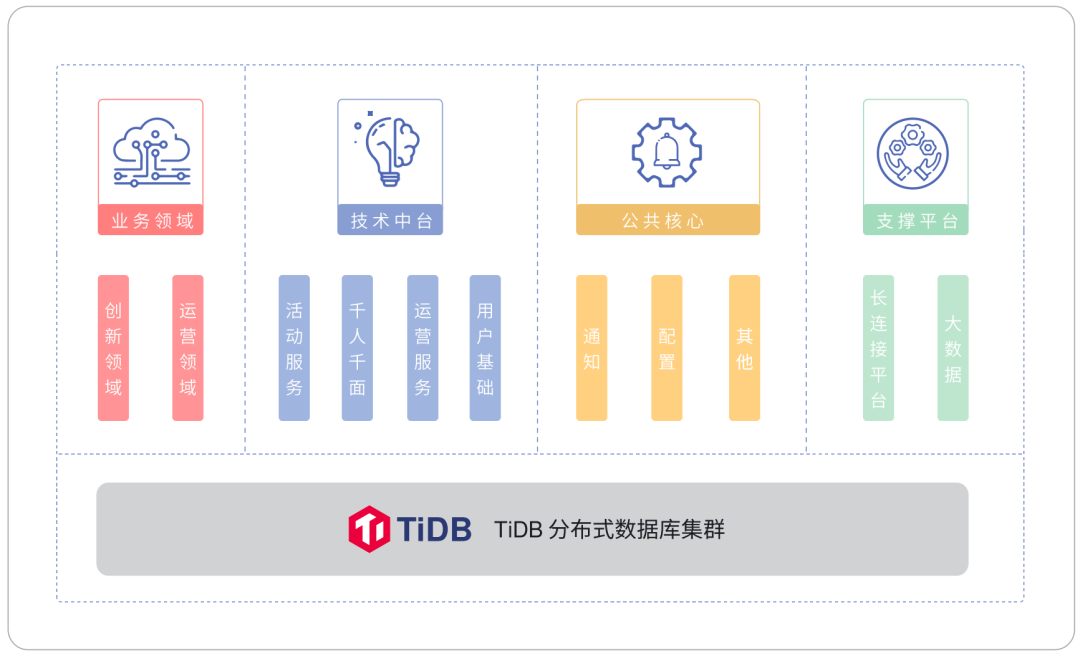 平安人寿构建 TiDB 分布式数据库集群,为活动类、运营类、创新类等多种应用系统提供数据服务。TiDB 在保障核心业务高效支撑的同时,向上层应用提供标准化的 API 接口,为业务运营人员提供了灵活的查询界面,满足实时、便捷、准确的查询服务请求。