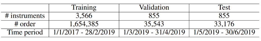 该研究基于微软 AI 量化投资开源平台“微矿 Qlib”进行了所有方法的训练和回测。实验在 A 股2017年1月到2019年6月的分钟级股票量价数据集上进行,并按照时间切分了训练、验证和测试集,如表1所示。