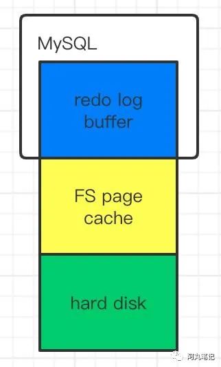 2)写入redo log file,但是还没有fsync,这时候是处于黄色的位置,处于系统缓存。