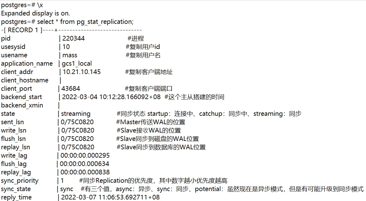 主库上查看流复制进程: