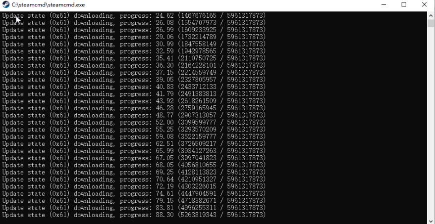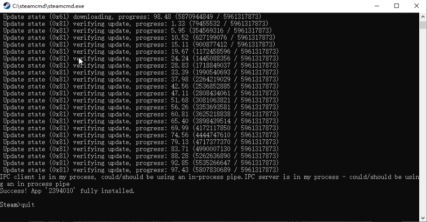 输入 app_update 2394010 validate 后,按回车下载这个游戏的服务端