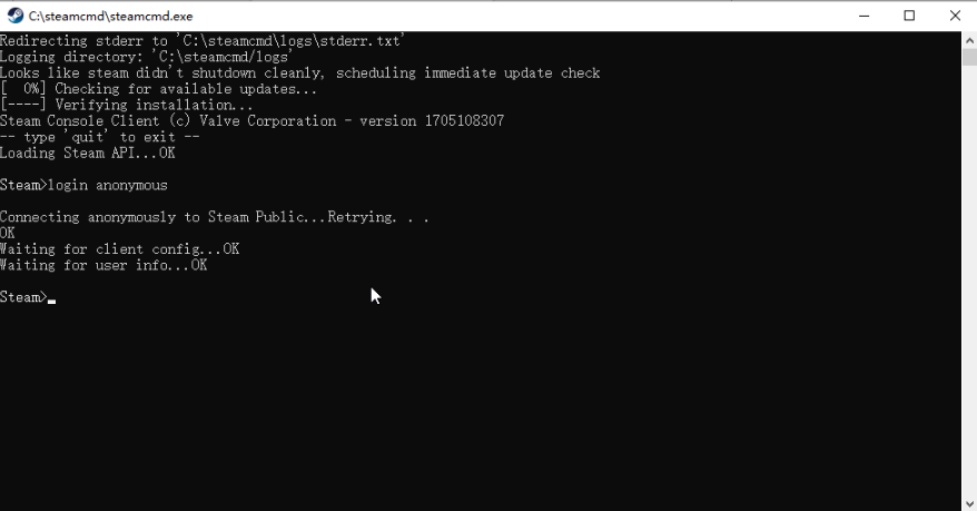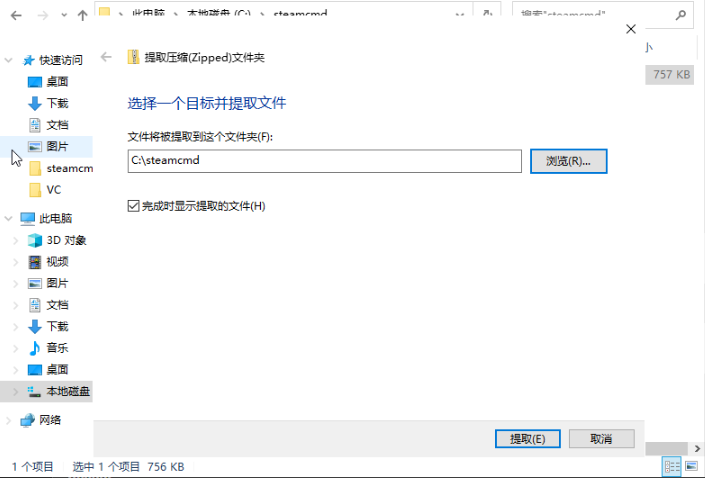 下载 steamcmd.zip 目录为 C:\steamcmd