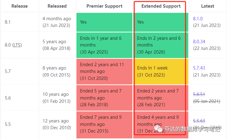 最终结论:MySQL5.7 生命周期结束的具体日期