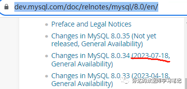 另外,该网站的 "Released" 和 "Latest" 列的日期也存在错误。例如,MySQL 8.0.34 的实际发布日期是 2023-07-18,而不是网站上列出的 21 Jun 2023。