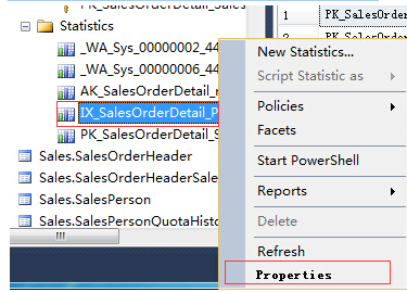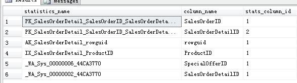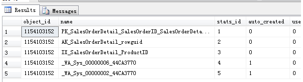 - select * from sys.stats where object_id=OBJECT_ID(N'[Sales].[SalesOrderDetail]')