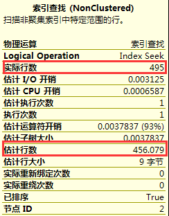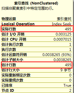 估计行数为896.773,与统计信息的直方图的信息一致。其实就是根据直方图统计出来的,如果估计行数不准确,一定是统计信息没有正确的直方图信息,因此需要更新统计信息。