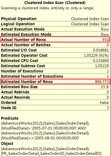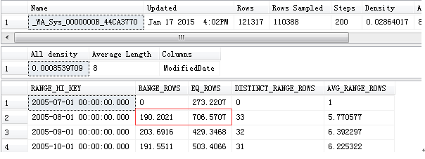 如果查询日期范围在'2005-07-01'<ModifiedDate<='2005-08-01' ,看上图,查询返回的估计行数应该为896.7728(190.2021+706.5707)
