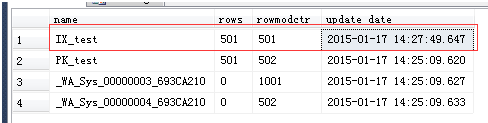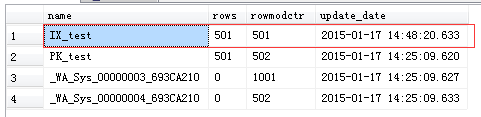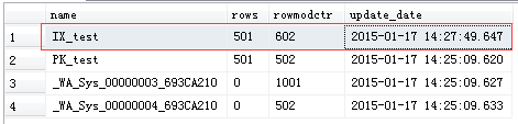 - --z再更新一次,使索引更新累计rowmodctr = 501行