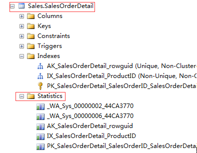 Name | 统计信息对象的名称(IX_SalesOrderDetail_ProductID) |