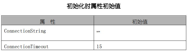 当创建一个新的 GBaseConnection 实例的时候,其属性设置为下面的初始