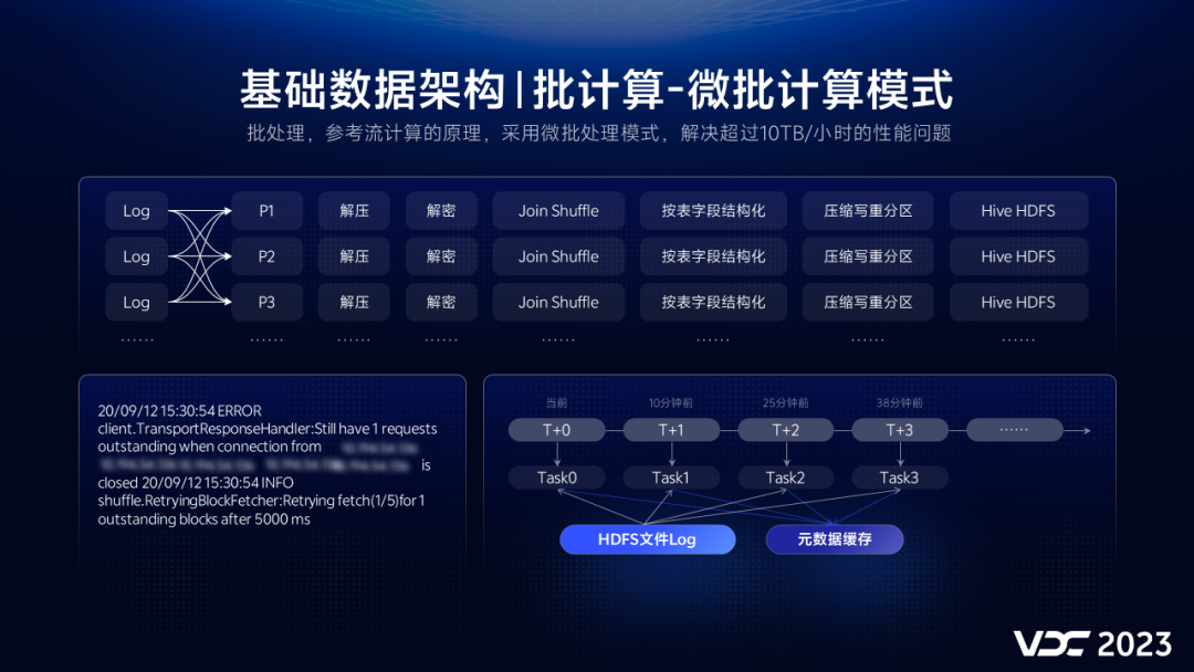 批处理,参考流计算的原理,采用微批处理模式,解决超过10TB/小时的性能问题。