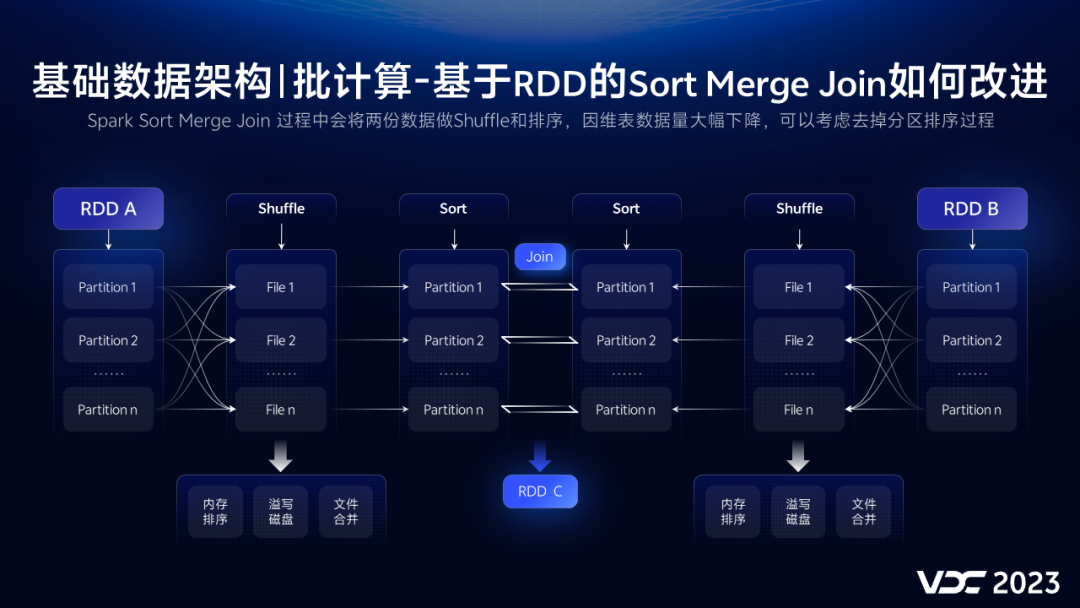 接下来,调整业务表和维表的Join方式,首先,来看下原来大表关联使用的Sort Merge Join的原理。