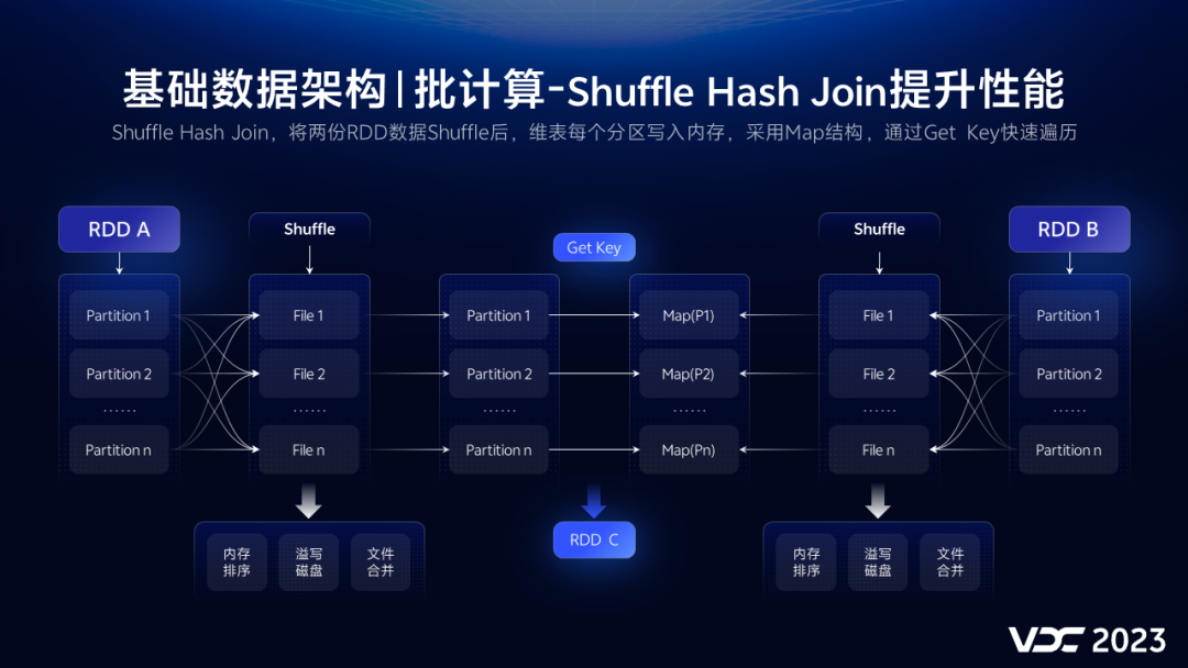 而对于千万级维表如果采用广播方式,可能造成Driver端OOM,毕竟维表还是GB级别的,所以,采用Shuffle Hash Join方式是最佳方案。