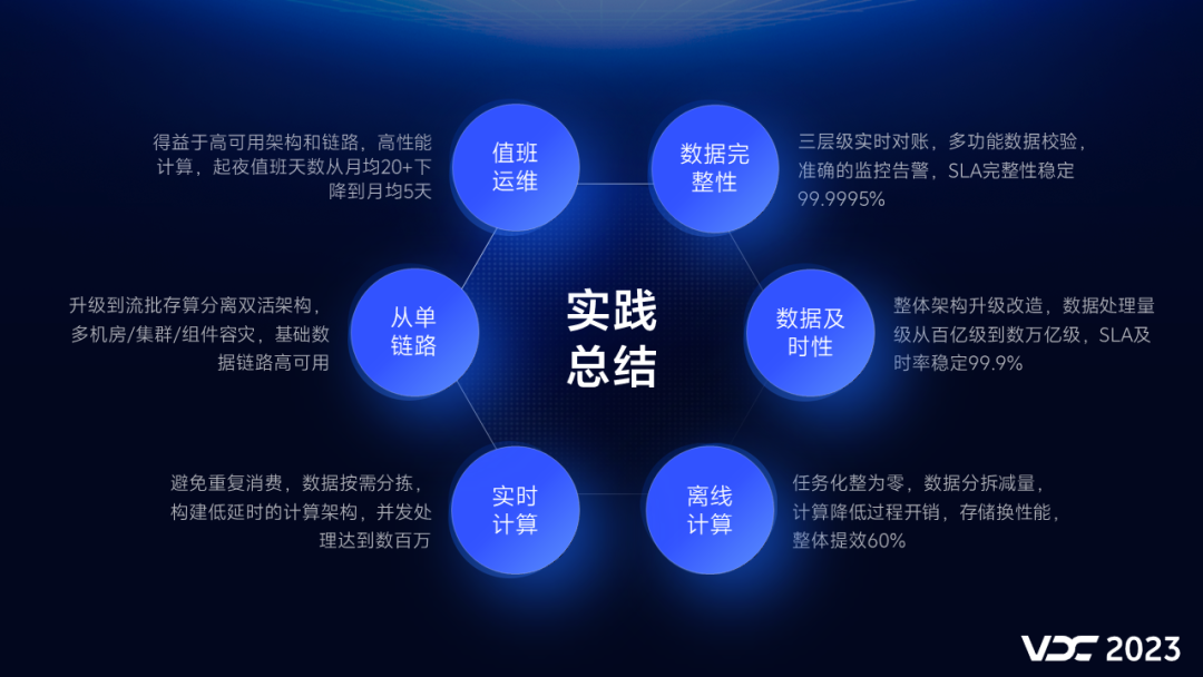 数据及时性,整体架构升级改造,数据处理量级从百亿级到数万亿级,SLA及时率稳定保持在99.9%。