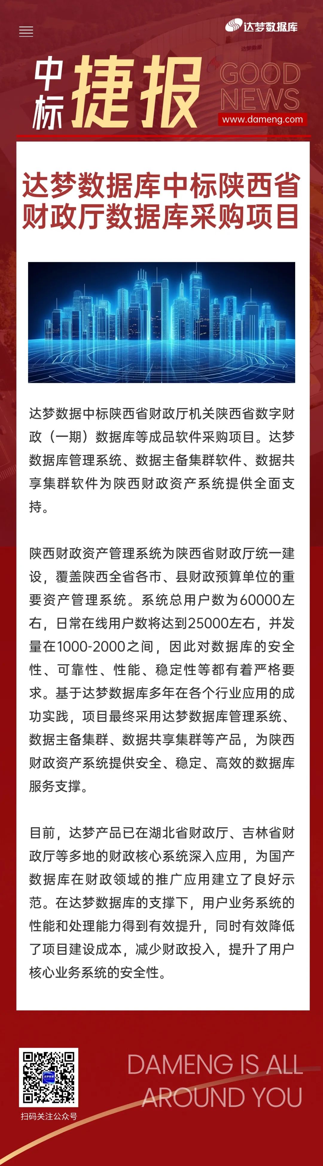 达梦数据库中标陕西省财政厅数据库采购项目