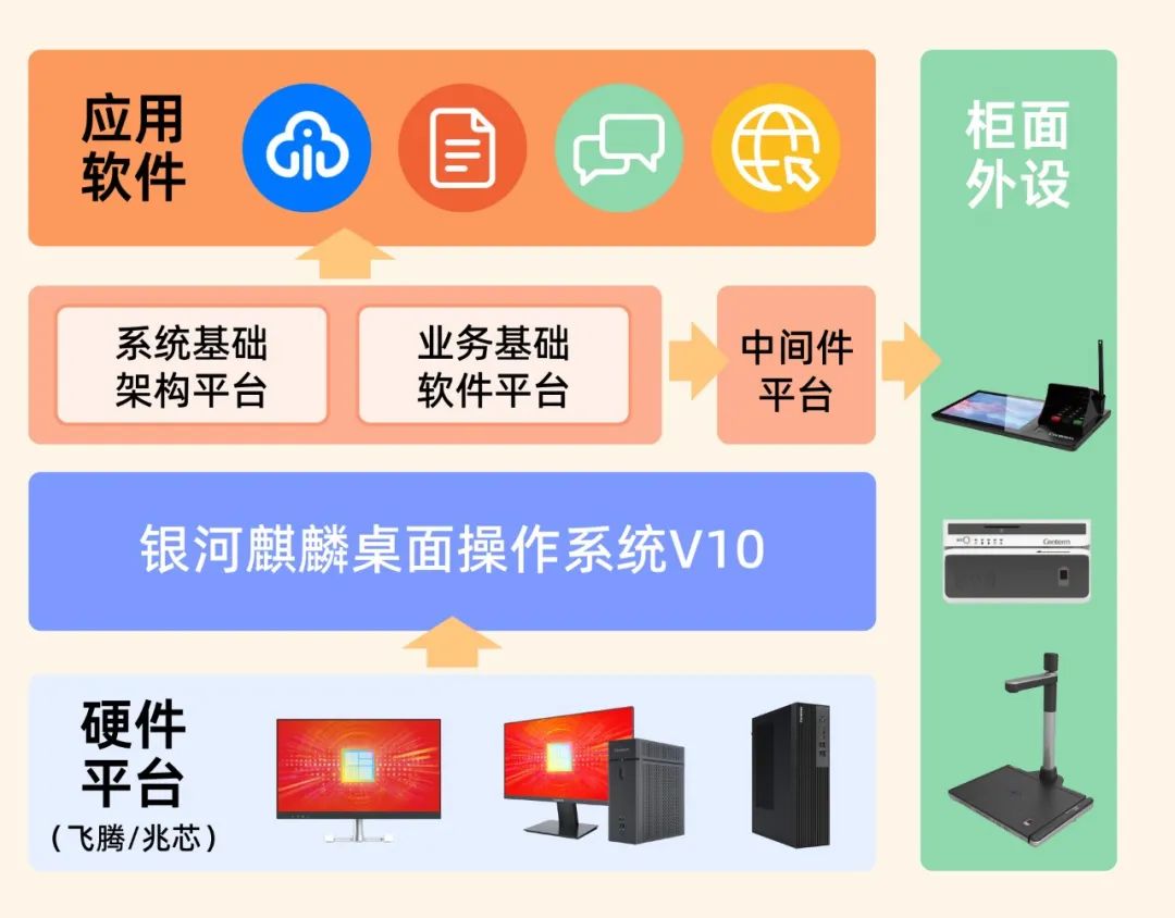 案例价值:实现柜面业务向国产化系统全面迁移,100%支持柜面业务所需的外设,包括柜外清/柜内清、读卡器/身份证阅读器、打印机、指纹仪等,有效提高了风险应对能力,优化用户管理流程,提高了办公工作效率,提升了客户体验。